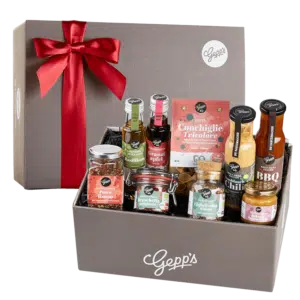 Die Dinner Deluxe-Geschenkbox ist ein einzigartiger Schatz für Genießer. Die hochwertige Box enthält viele Leckereien, um Gerichte im mediterranen Stil zuzubereiten.