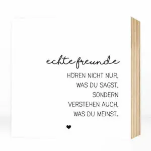 Bei diesem Echte Freunde Holzbild handelt es sich um einen großartigen Fotodruck auf edlem Holz, das sich aufhängen oder hinstellen lässt. Es ist das perfekte Geschenk für verschiedene Anlässe.
