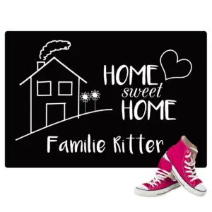 Die tolle Fußmatte mit Familiennamen überzeugt nicht nur durch ein fröhliches Motiv mit einem hübschen Schriftzug. Sie wird zudem durch den Aufdruck eines Wunschnamens zum einzigartigen Geschenk. Ideales Präsent zum Einzug in eine neue Wohnung.
