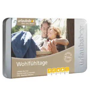 Die Geschenkbox Wohlfühltage verspricht 2 Übernachtungen für 2 Personen + Frühstück in einem von rund 100 Hotels. Das Geschenk für Partner und Paare. Verschenken Sie Wohlfühlen, Erinnerungen und Erholung.