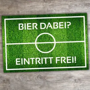 Diese Fußmatte für Männer im Stadion-Design sorgt mit dem witzigen Spruch "Bier dabei? Eintritt frei!" garantiert für Lacher. Tolles Geschenk für Fußball-Fans.