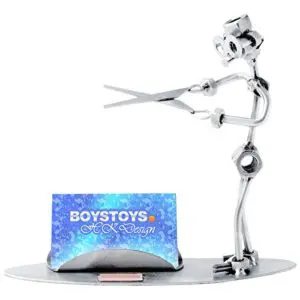 Der Hairdresser Visitenkartenhalter verwandelt die Ablage für den Stapel an Visitenkarten in eine lebendige, dem Friseur-Salon entsprechende Kulisse. Es handelt sich dabei um das perfekte Geschenk für Friseure.