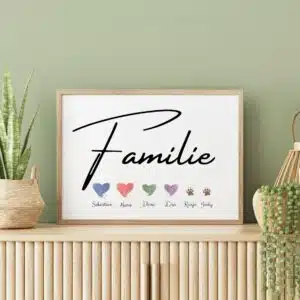 Die persönliche Familien-Leinwand ist ein hochwertiger Kunstdruck. Symbolisch für die Familie steht das Haus, in dem sich die Namenszüge der Bewohner befinden. Ein geschmackvolles Geschenk, das jeder Familie viel Freude bereitet.