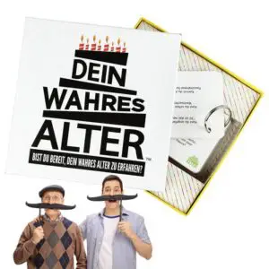 Das Gesellschaftsspiel "Dein wahres Alter" ist ein unterhaltsames Spiel mit über 300 lustigen Fragen. Für die Antworten gibt es Punkte oder Minuspunkte, über die das wahre Alter berechnet wird.