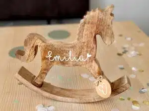 Holzpferd mit Gravur