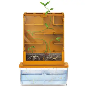 Mit dem Pflanzen Labyrinth können Bohnen oder andere Kletterpflanzen beim Wachsen durch eine Kunststoffscheibe hindurch beobachtet werden. Die kleinen Pflanzen müssen sich den Weg durch einen Irrgarten bahnen.