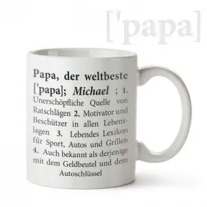 Willst du deinem Papa zeigen, dass er dir besonders wichtig ist? Schenke ihm die personalisierte Weltbester Vater Tasse, damit er weiß, dass er der allerbeste auf der Welt ist!