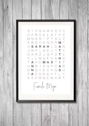 Das Wörterpuzzle individuell & stylisch. Verstecken Sie ein Wort (den Namen Ihres Liebsten, eine Erinnerung, etc.) zwischen den Zeilen. Ein individualisierbares Poster ist ein tolles Geschenk!